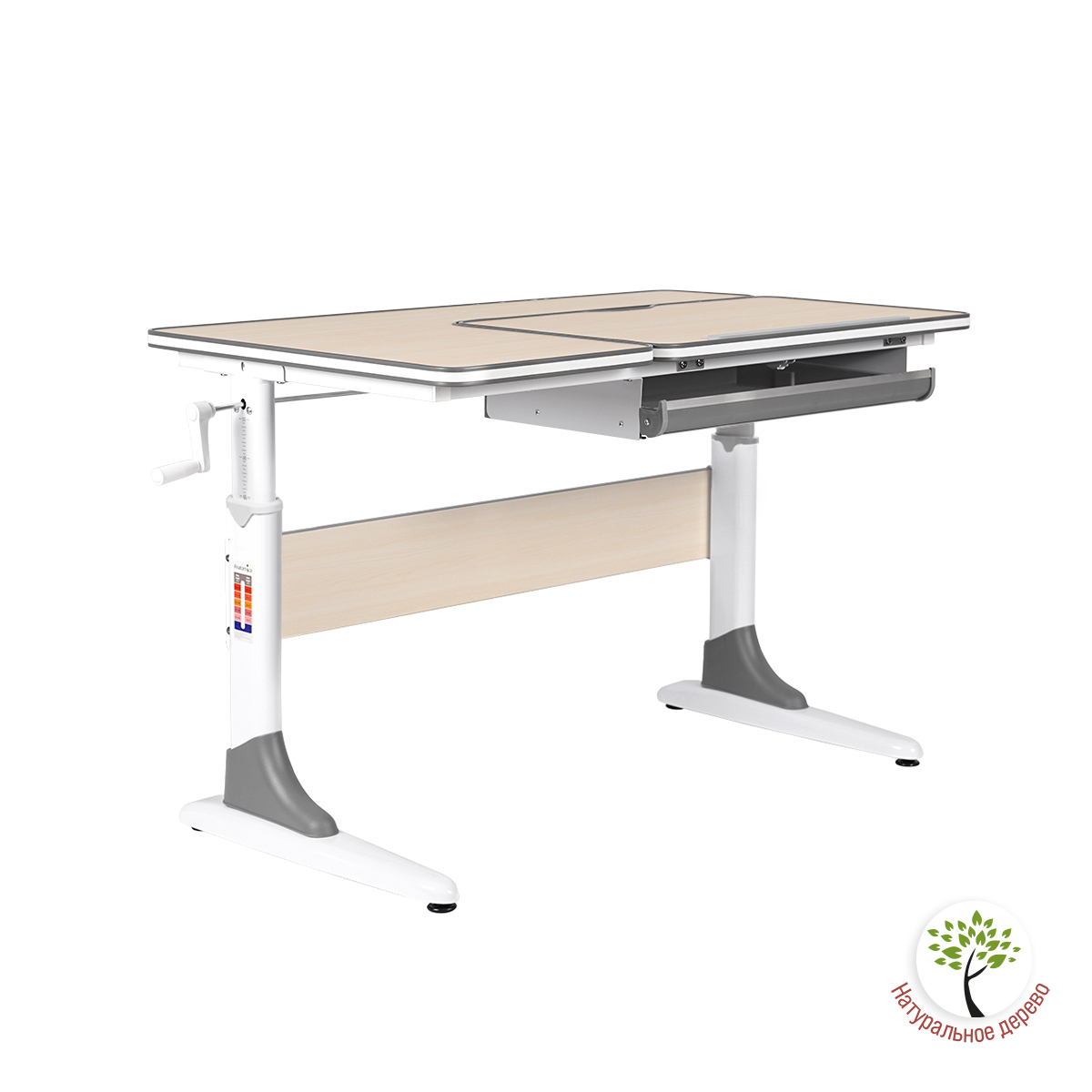 С помощью специальной ручки, ребёнок сам сможет плавно и легко отрегулировать высоту парты.