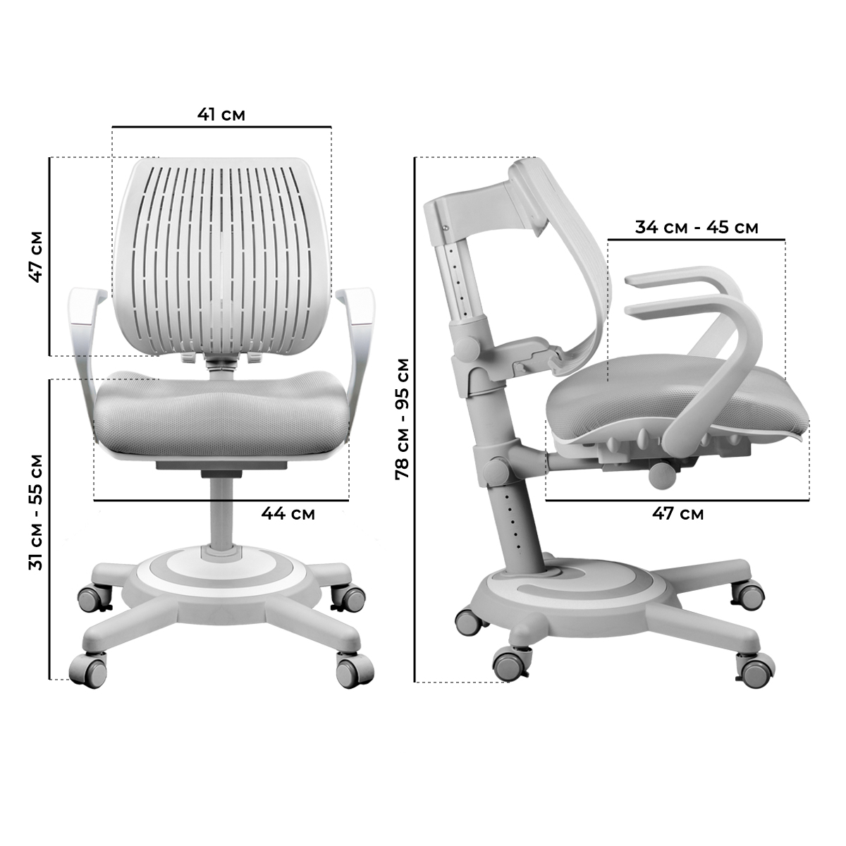 Спинка кресла имеет уникальную конструкцию, поэтому она обеспечивает максимальное прилегание к спине ребенка, а результатом станет отличный поясничный упор, поддержка спины и минимизация нагрузки на позвоночник и главное - формирование правильной осанки. Кресло также дополнено подлокотниками. Сиденье кресла имеет эргономичную форму и плавно повторяет контуры тела, когда ребенок сидит, обеспечивая нормальную циркуляцию крови.